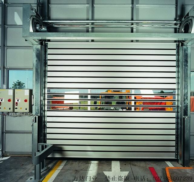 硬质大名快速门具有可靠性、实用性、耐久性、易操作性以及低 廉的维修费用和 低噪 音等性能。在工业应用中,每年正常无故障动作可达15万次以上。门板条为双层结构,可以抵抗强风和暴风雨及大雪的侵袭。根据需要,还可以将隔热铝制板条和透明的板条组合安装起来。板条在卷起时相互无接触,这样可以保持板条常年无变形、无磨损。另外板条之间也没有直接连接, 它们的两端是和可以卷绕的钢带螺接在一起,各板条之间用密封胶条连接,这样既可以节省空间,又可以保证门帘不变形,而且板条的更换也非常简单、快捷。
